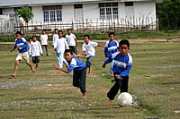 In unserem Kinderheim werden wir sehr gut versorgt. Beim Frühstück sitzen wir am liebsten auf dem Boden im Innenhof, wir essen auch gemeinsam zu Mittag und zu Abend. Meistens gibt es Reis, Gemüse, Huhn oder Fisch. Am Samstag, wenn wir keine Schule haben, sind wir meistens draußen.